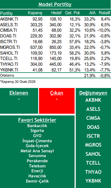Bu ay model portföyümüzde değişiklik yapmıyoruz.